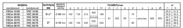 Краткая техническая характеристика фекальных насосов Pedrollo VXC15..20..30